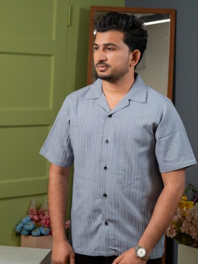 ৳ 850.00Original price was: ৳ 850.00.৳ 750.00Current price is: ৳ 750.00.Urban Popcorn: Royal Ash Cuban Collar Half-Sleeve Shirt — textured, breathable, and effortlessly stylish. -