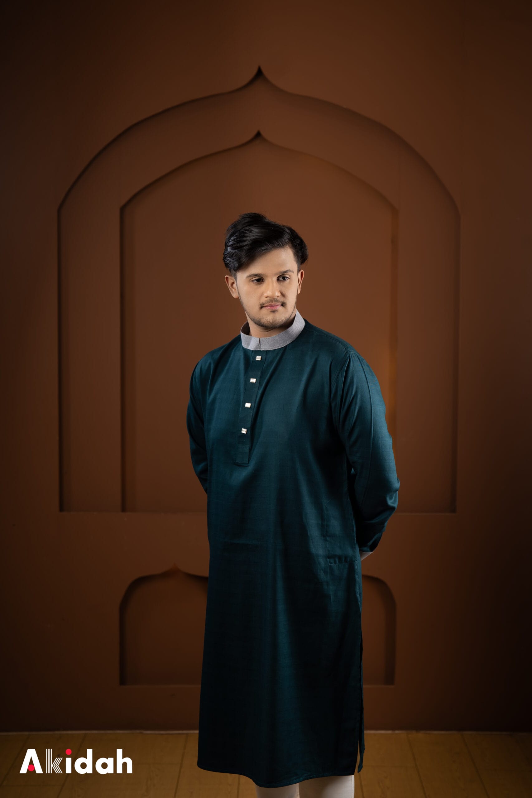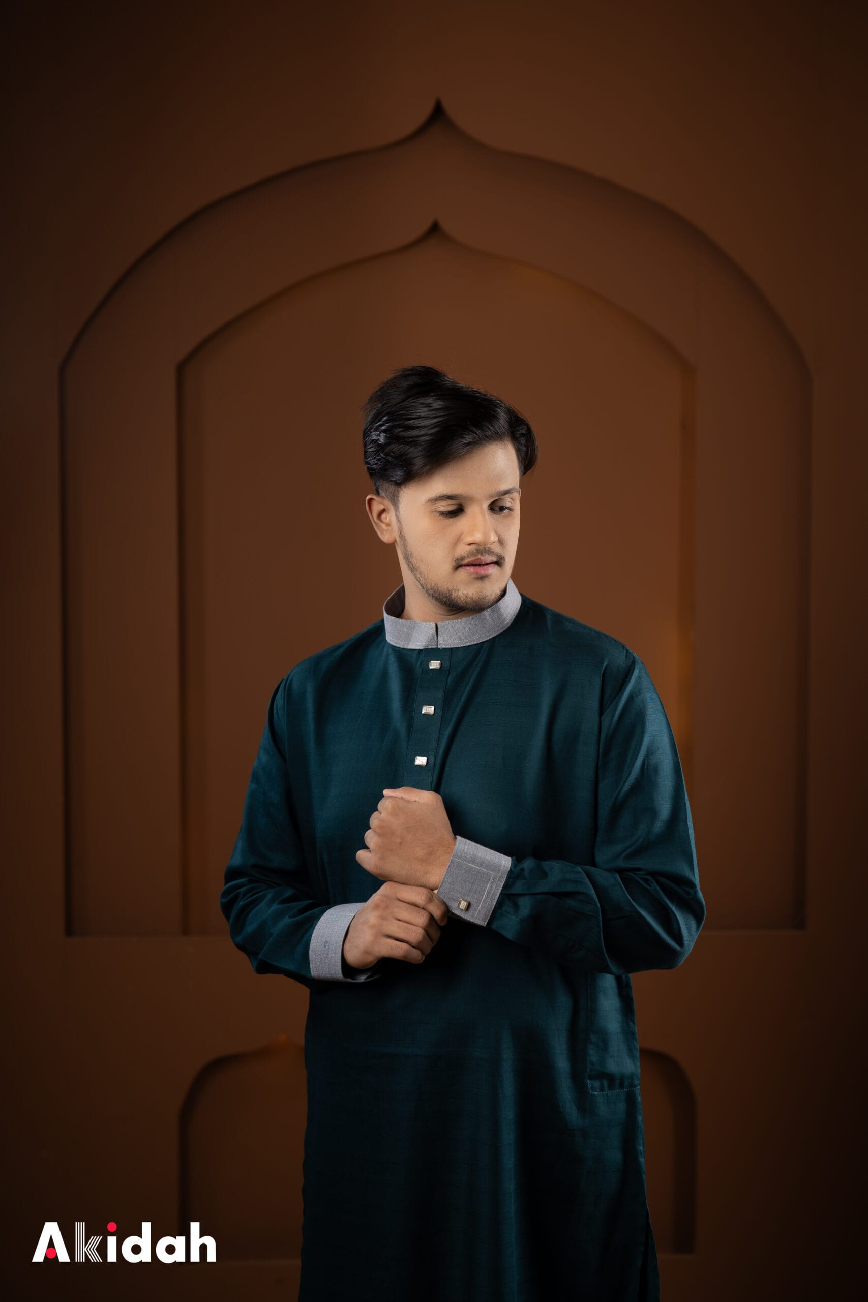 This Classic Cotton Forest Green Panjabi is crafted from a comfortable cotton-polyester blend, offering a soft feel with added durability. Designed for everyday elegance, it delivers a timeless look with all-day comfort.