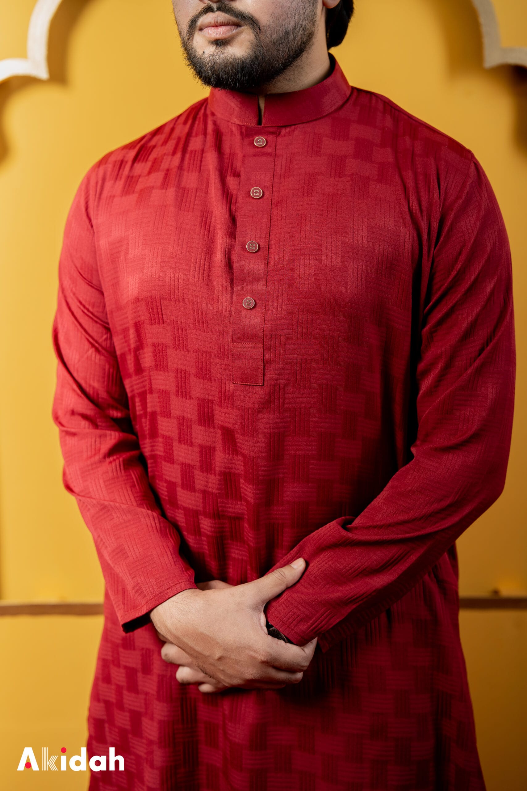 Rich, elegant, and timeless — our Vintage Burgundy Jacquard Panjabi features a deep solid tone enhanced with subtle jacquard texture that adds depth and sophistication to the fabric. The refined design paired with its luxurious color creates a polished traditional look, perfect for festive occasions, special gatherings, or an elevated everyday style.