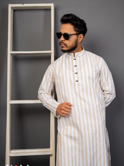 Silver Fern cotton-polyester blend Panjabi with digital print and Zari detailing — combining comfort, style, and refined traditional charm.